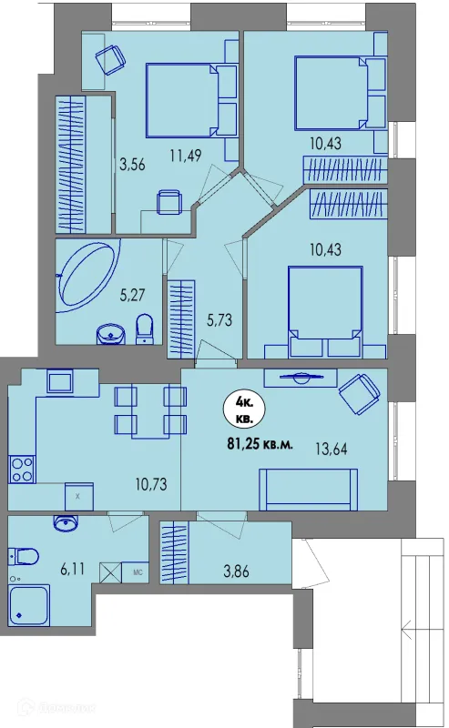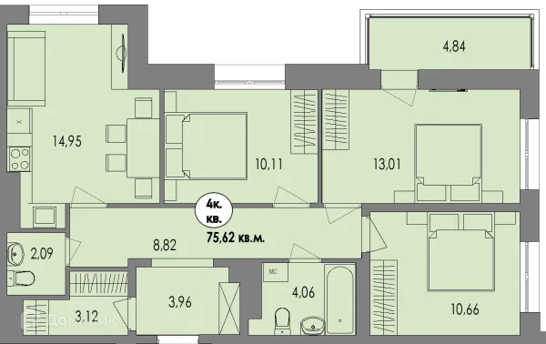4 комн. квартира в Петрозаводске в ипотеку от 76 330 руб/месяц