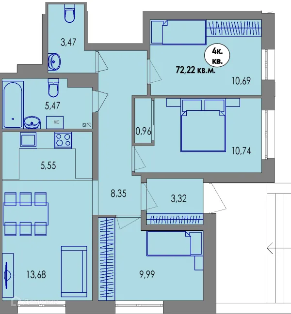 4 комн. квартира в Петрозаводске в ипотеку от 72 010 руб/месяц